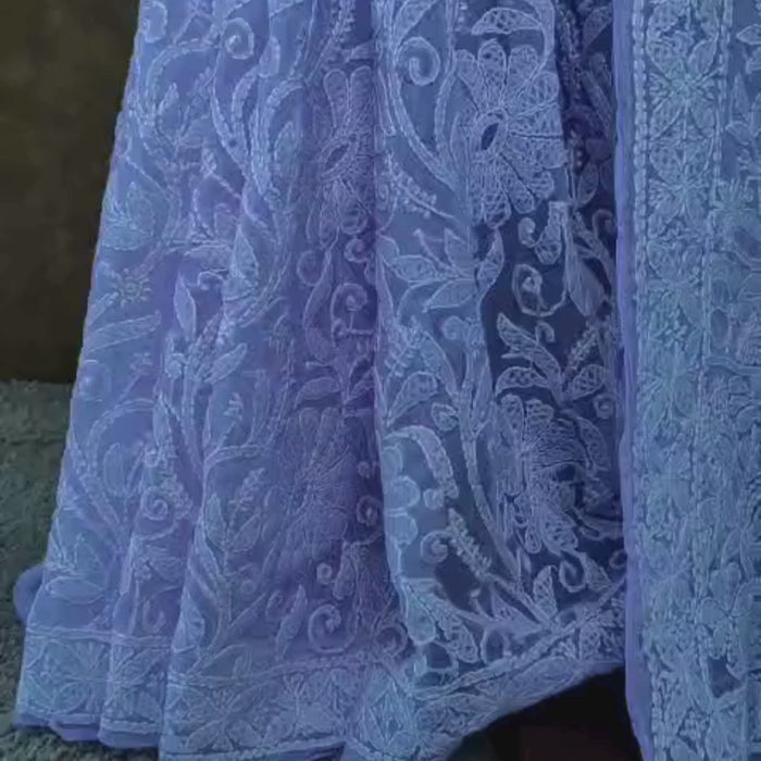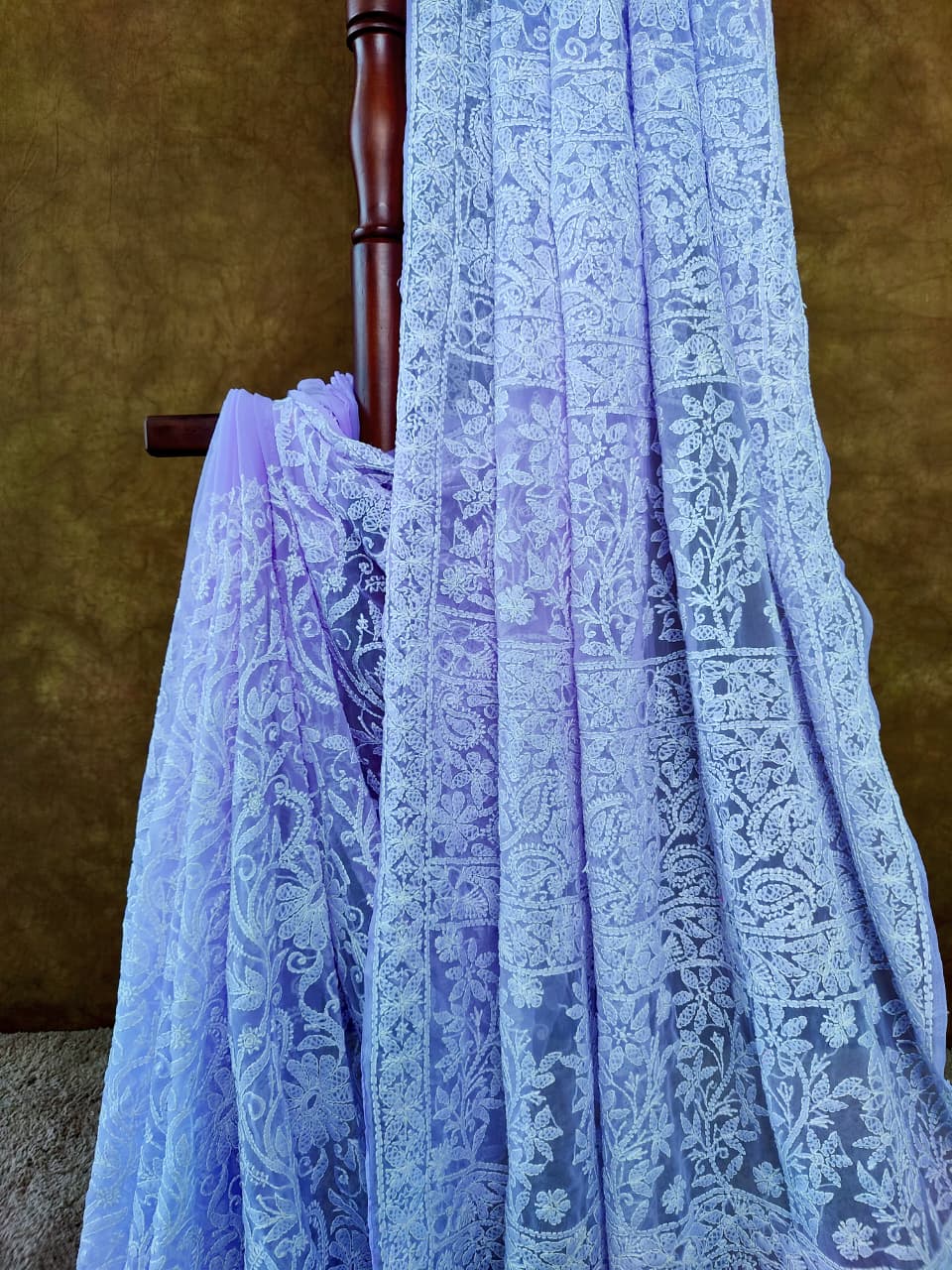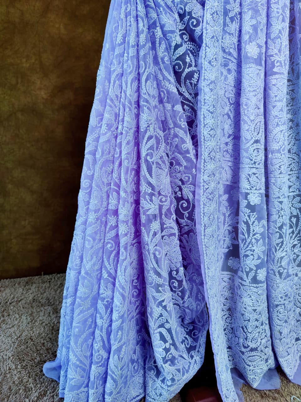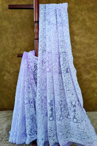 Lavender Chiffon Chikankari Saree with Full Jaal White Thread Work
