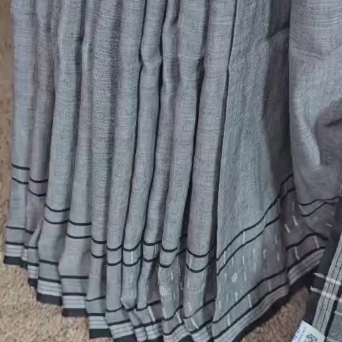 This grey handloom cotton saree offers a balanced combination of comfort, craftsmanship, and everyday style. Its breathable fabric, subtle motifs, and versatile design make it a practical addition to modern wardrobes. Ideal for regular wear as well as casual gatherings, the saree reflects simplicity with thoughtful detailing.